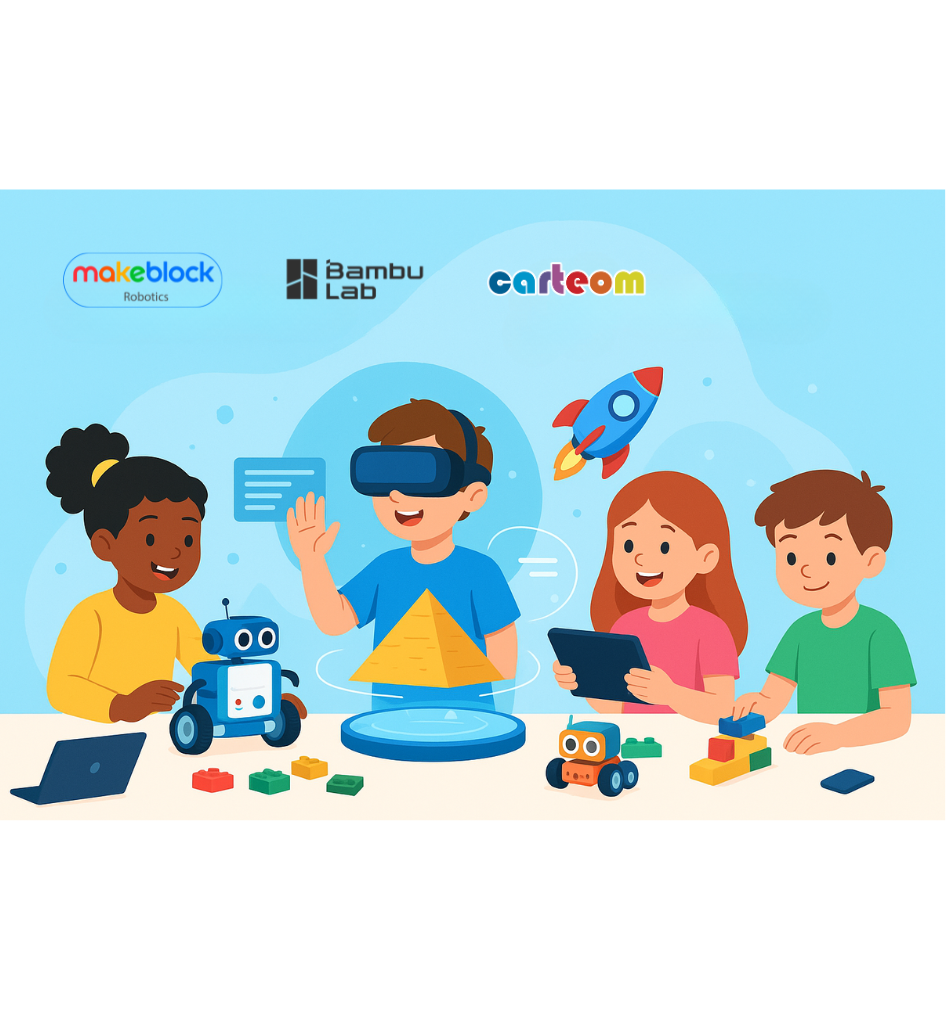 În parteneriat cu Makeblock și BambuLab, Carteom lansează o serie de cursuri STEM inovatoare dedicate copiilor: Proiectare 3D, Robotică și Realitate Augmentată. 🚀 Aceste programe interactive combină tehnologia cu învățarea prin joacă, oferind copiilor șansa să creeze, să experimenteze și să descopere lumea viitorului.